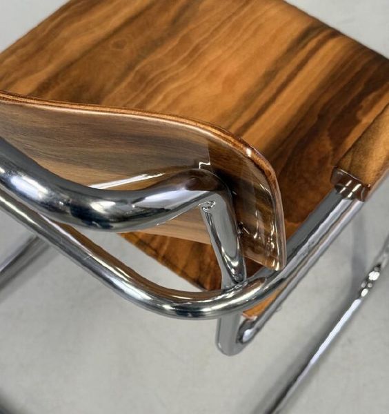 Materiál: chromovaná ocel, překližka, bukový masiv, ořech.