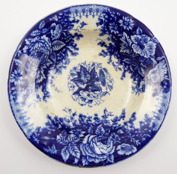 - AUGUST NOWOTNY, ALTROHLAU, Čechy, Stará Role (Altrohlau) 1869 - 1880. Jemná kamenina a modře kobaltový podglazurní tisk. Porcelánka Augustin Franz Nowotny, Altrohlau. Průměr 23,5 cm. Hluboký talíř z jemné kameniny zdobený podglazurní modře kobaltovou košatou květinovou kompozicí s ornamenty. Značeno zespodu: tištěná značka AUG. NOWOTNY ALTROHLAU. a vtlačený nápis.