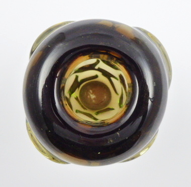 20. léta 20. století, M. Köck, Duchcov, sklo žluté, žíhané, vrstvené hnědým,...