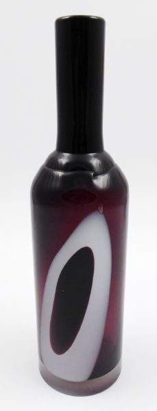 VÁZA Z FIALOVÉHO SKLA S OPÁLOVÝM DEKOREM - LEDNICKÉ ROVNE, Československo, Lednické Rovne, 70. a 80. léta minulého století. Bezbarvé, opálové a tmavě fialové hutně tvarované sklo. Autor: Jarosla Taraba (1932-2020) pro Sklárnu Lednické Rovne. Výška 31 cm. Umělecká váza typu Sommerso z tmavě fialového skla s opálovým zataveným dekorem, přejímané křišťálově čirou sklovinou. Zespodu váza matovaná. Značeno originální nálepkou s emblémem výrobce a CZECHOSLOVAKIA.