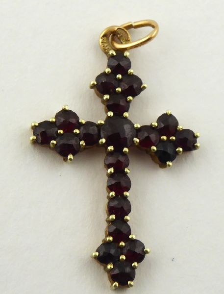 Starožitnost: 76. ZLATÝ KŘÍŽEK S PRAVÝMI ČESKÝMI GRANÁTY