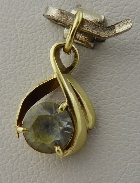 - SAFINA, PRAHA, Československo 1953 - 1978, Čtrnáctikarátové zlato, zirkon. SAFINA, Praha - tehdejší národní podnik zlatníků a stříbrníků. Ryzost Au 585/1000, celková hmotnost 1,30 g. Celková výška přívěsku 15 mm. Drobný zlatý přívěsek ze zlata zdobený zirkonem. Značeno: československý punc čejka a mistrovská značka výrobce.