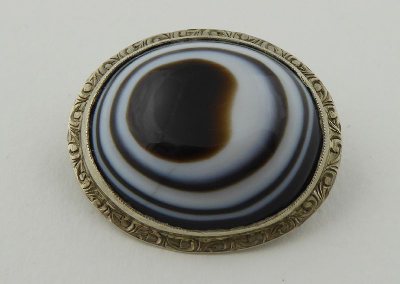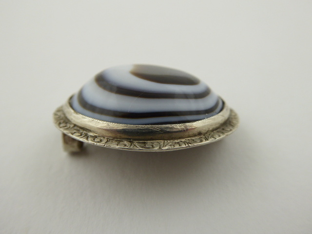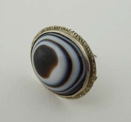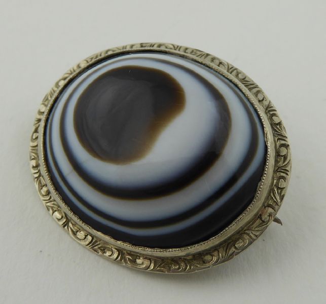 Starožitnost: 91. STŘÍBRNÁ BROŽ S PŘÍRODNÍM ACHÁTEM