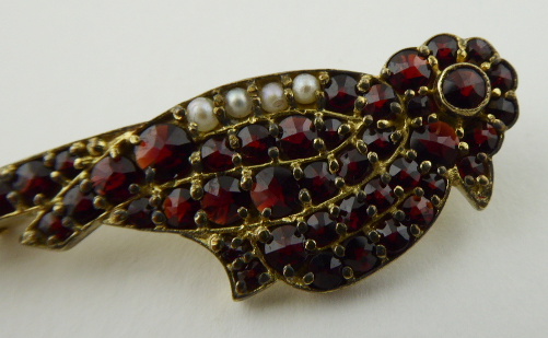 Starožitnost: 95. ZLACENÁ STŘÍBRNÁ BROŽ S ČESKÝMI GRANÁTY