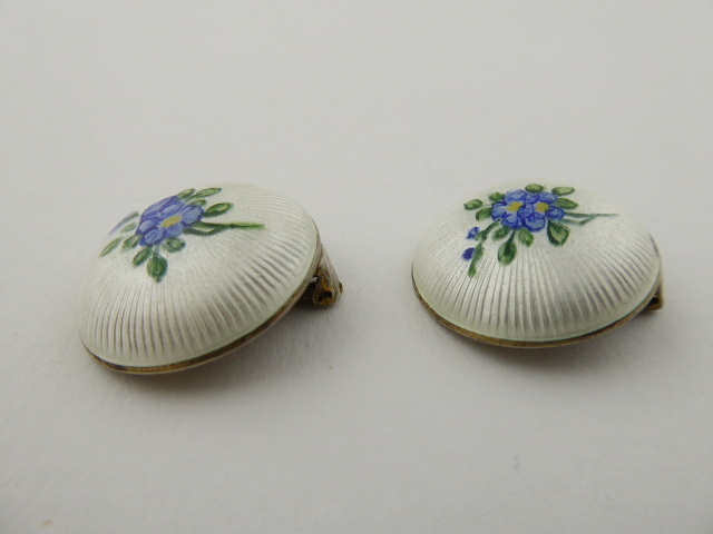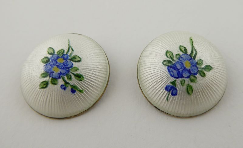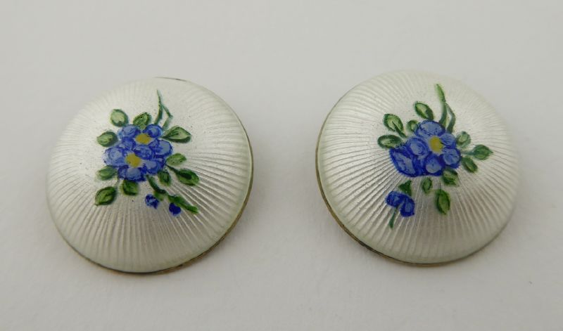 Starožitnost: 97. STŘÍBRNÉ NÁUŠNICE S BÍLÝM EMAILEM A KYTIČKAMI