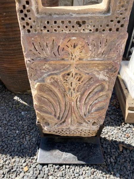 Kamenná zvonice malá-pískovec bohatě zdobená v železném podstavci 36*97*30