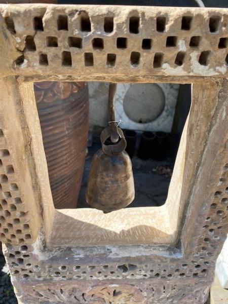 Kamenná zvonice velká-pískovec bohatě zdobená v železném podstavci 190*45*30