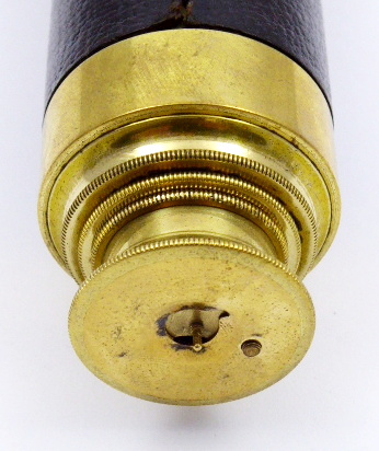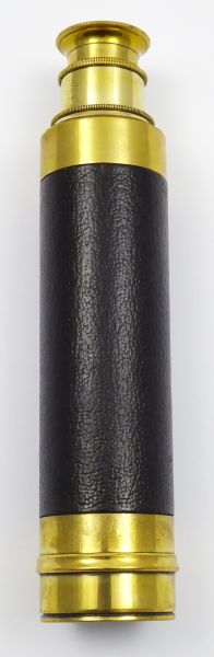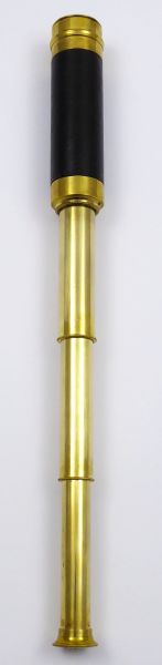 Evropa 1880 - 1910. Mosaz, přírodní kůže, optika. Délka zasunutého dalekohledu 15,5 cm, délka vysunutého dalekohledu 42,5 cm. Přepínací monokulární (jednooký) výsuvný dalekohled z mosazi a s přírodní kůží. Tento mosazný výsuvný monokulární dalekohled má možnost přepínání zvětšení objektů.