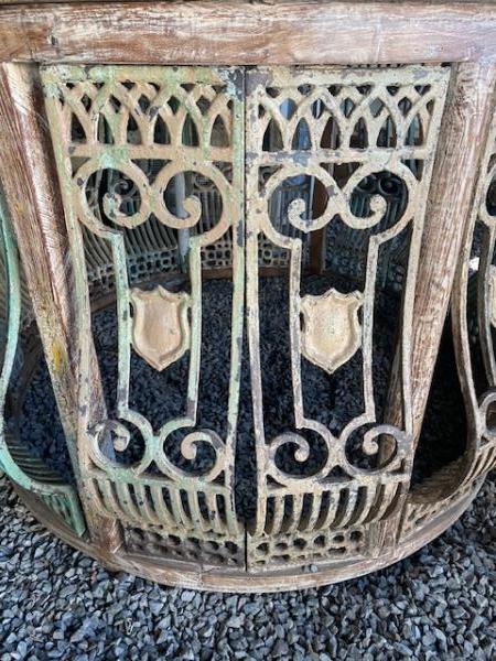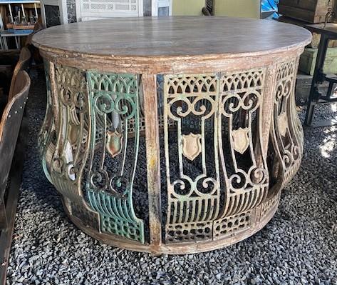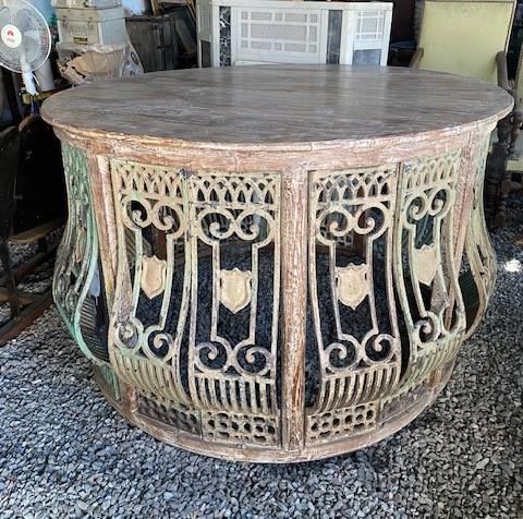 Kulatý stůl velký, kombinace tvrdé dřevo+kovové zdobné výplně 138*92